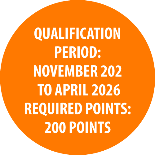 • Must earn 200 total points during the qualification period.